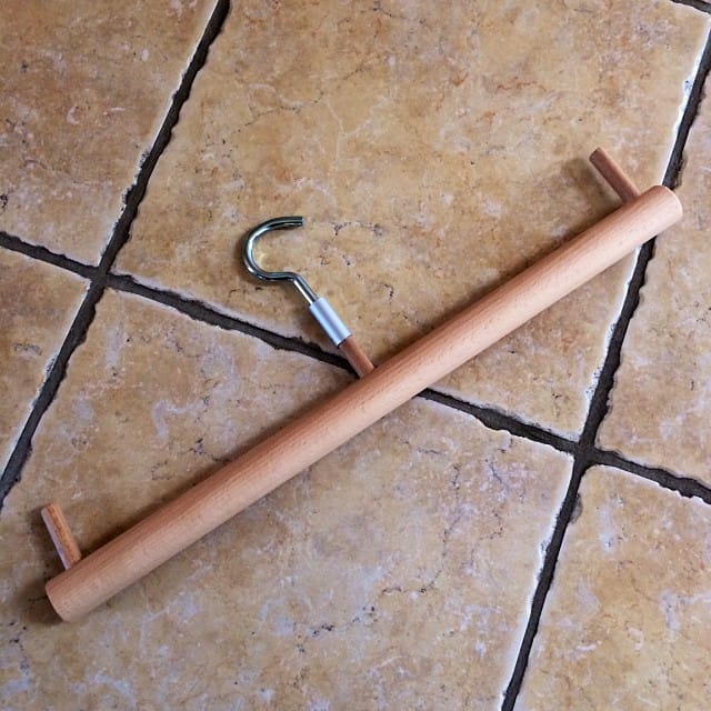 - 25mm Buchen-Rundholz / „Dübelstange“: 1Meter lang kostet ca. 3,50 EUR (reicht aber dann für 2 „Kleiderbügel“- also rechnen wir mal mit 1,75 EUR)