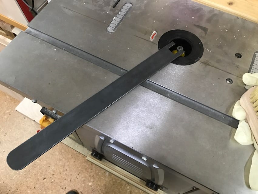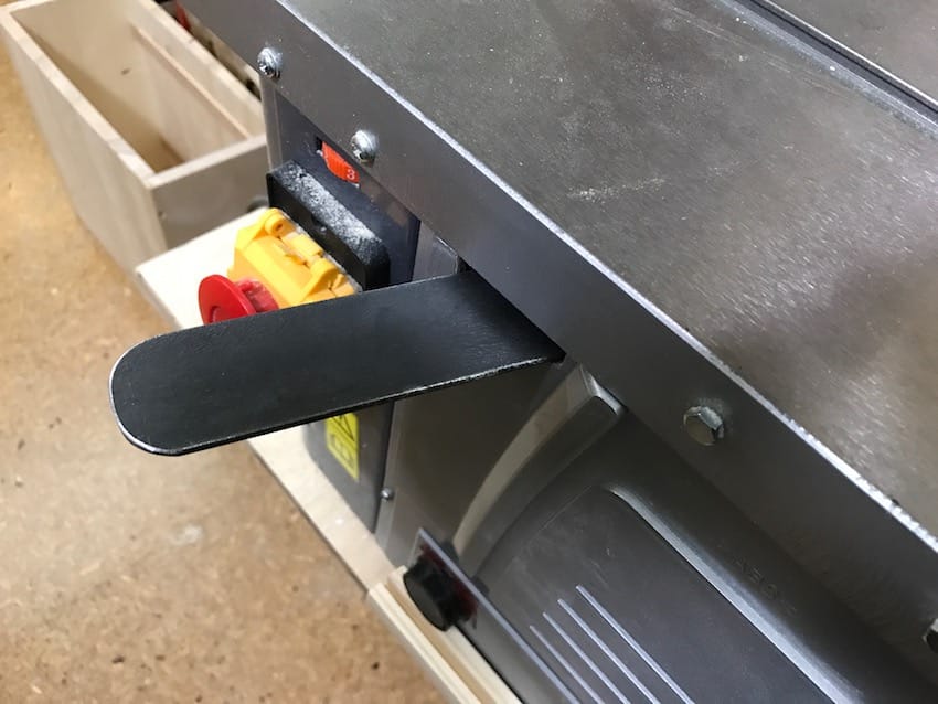 Auf dem obigen Bild kann man sehr schön erkennten, wie sich Scheppach (Woodster ist die Billigmarke von Scheppach) die Arretierung vorstellt. In der Praxis ist das aber eher hinderlich.