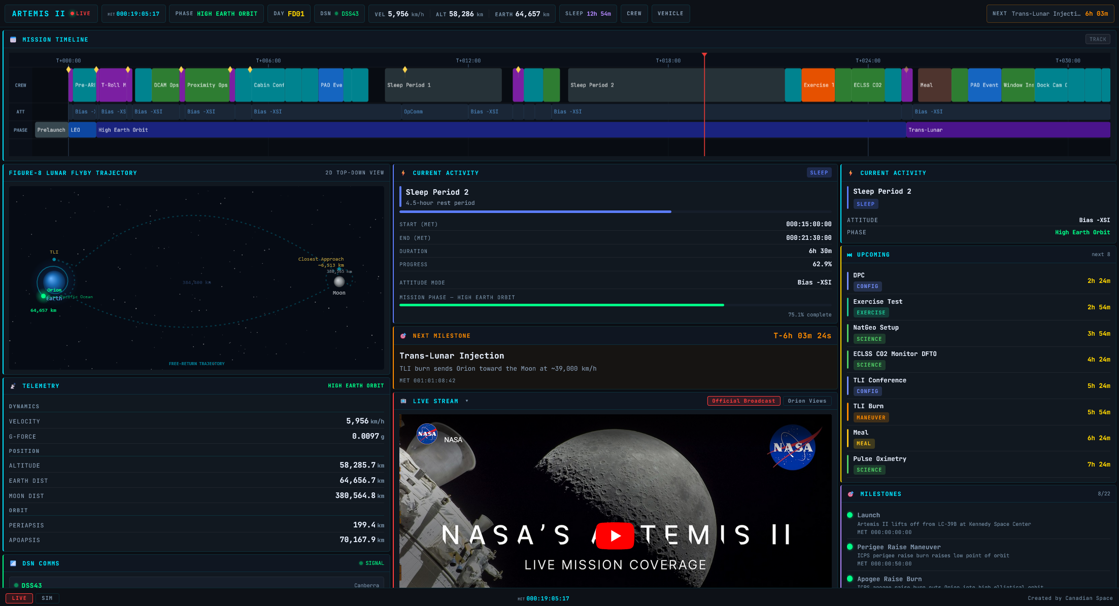 Check out this dashboard for real-time status and telemetry from Artemis II.