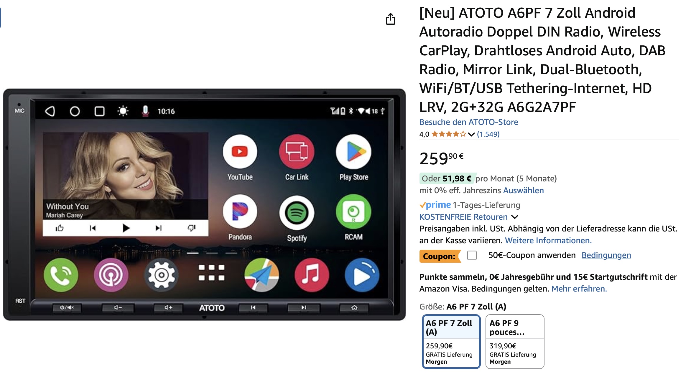 Ich hab mir für meinen alten Jimny einen neuen Auto-Radio mit Android-Betriebssystem * besorgt, da sie ein günstiger Weg war CarPlay im Doppel-DIN-Format zu bekommen. Ich hab das Gerät nun seit 4 Monaten und bin damit immer noch sehr happy. Im Nachgang habe ich mir dann sogar noch das DAB+-Modul * dazu gekauft, da ich a) beim Kauf des Radios nicht überrissen habe, dass DAB „nicht von haus aus“ dabei ist und b) weil ich diesen besseren Radioempfang auch nutzen wollte.