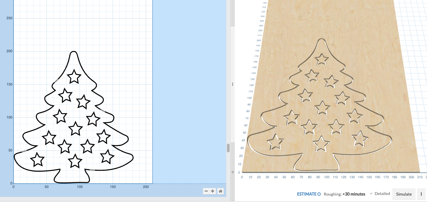 Wir jedes Jahr in der Vorweihnachtszeit, wollte ich wieder ein paar Geschenke basteln und mir sind so „kleine, leuchtende Christbäume“ in den Sinn gekommen, deren Kontor ich mir meiner Shapeoko 2 Fräse herstellen wollte.