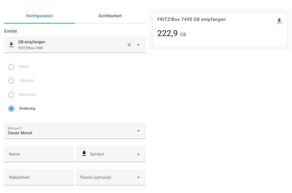 Da ich schon seit längerer Zeit einen Raspberry Pi mit Home Assistant betreibe, war mein Ansatz dort zu suchen. Es gibt für Home Assistant die „FritzBox Tools“ und wenn man diese mit seiner Fritzbox verbindet, so bekommt man darüber auch eine Vielzahl von Daten. Und dort gibt es dann auch eine Entität, die sich „GB empfangen“ nennt.
