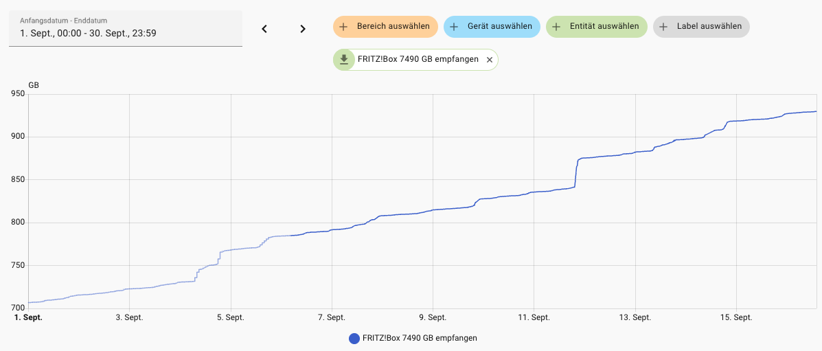 Home Assistant Screenshot vom meinen Internet-Datenverbrauch im aktuellen Monat (Sept. 2025)