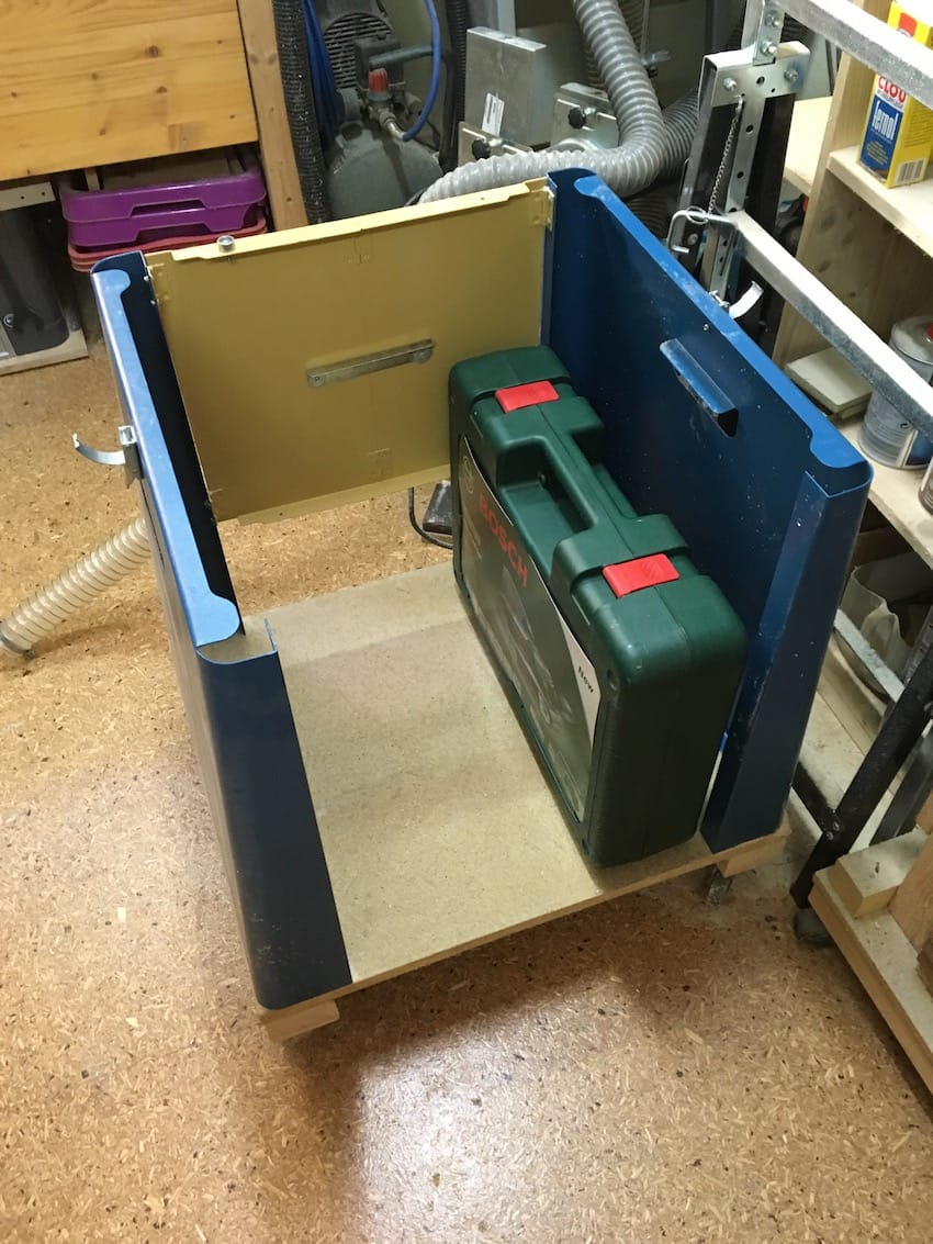 Auf dem Bild leider nicht so schön zu erkennen: die Verbindung zwischen Rückwand und Seitenteile ist einfach nicht mit 3x30mm Schrauben realisiert. Die vordere Verbindung ist nur genagelt, weil ich nicht wollte, dass man da die Schraubenköpfe sieht. „Eitel“ ist man ja schliesslich auch.